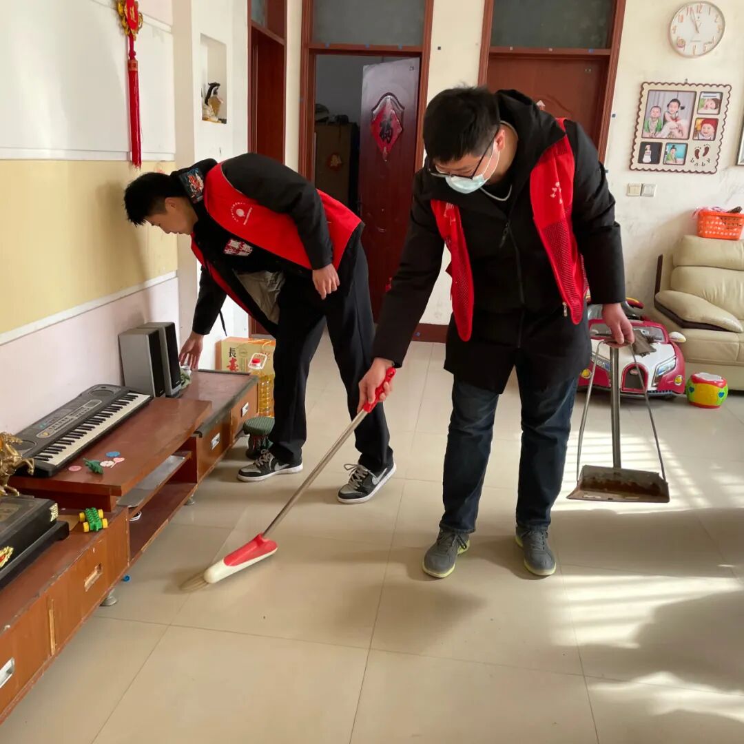 永昌街道新时代文明实践服务队的志愿者为过寿老人打扫卫生