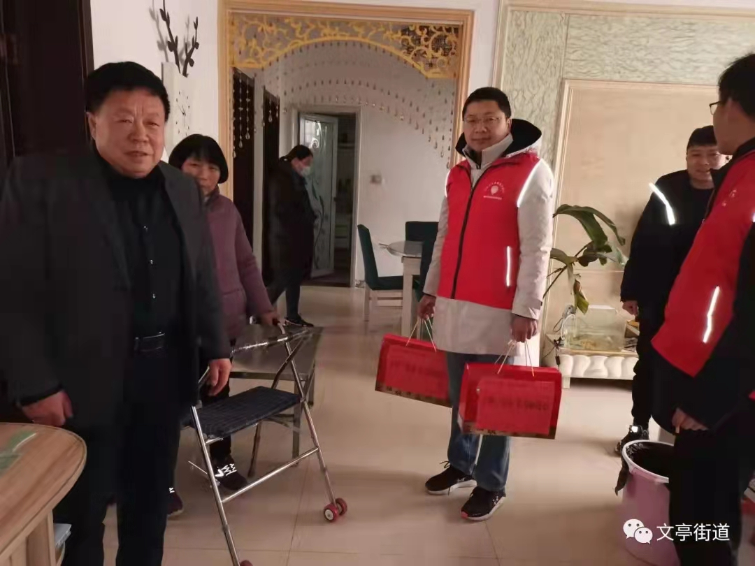 文亭街道新时代文明实践服务队的志愿者为过寿老人送长寿面并宣讲了移风易俗和烟花禁放