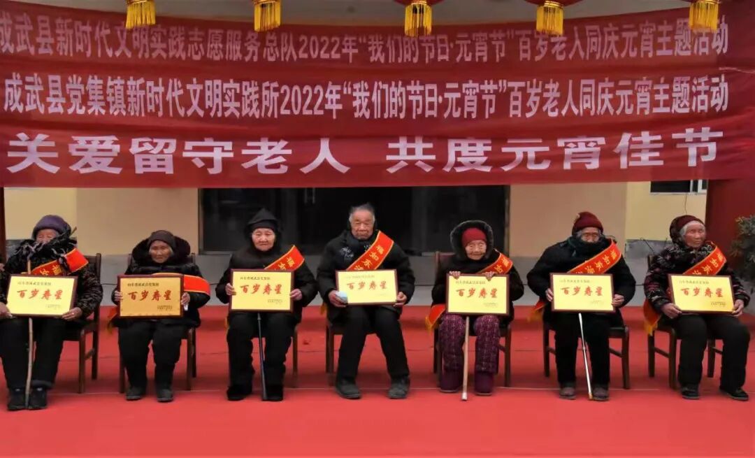 在党集镇敬老院,志愿者与老人们一起联欢,扭秧歌、唱大戏、包元宵,人们沉浸在节日的幸福氛围中。其中,参加活动的7位百岁老人迅速成为网红,群众纷纷拿起手机拍下老人们的幸福生活,年龄最长的老人今年112岁,她笑着对大家伙说,“如今生活越来越好,我还得再活上几年。”