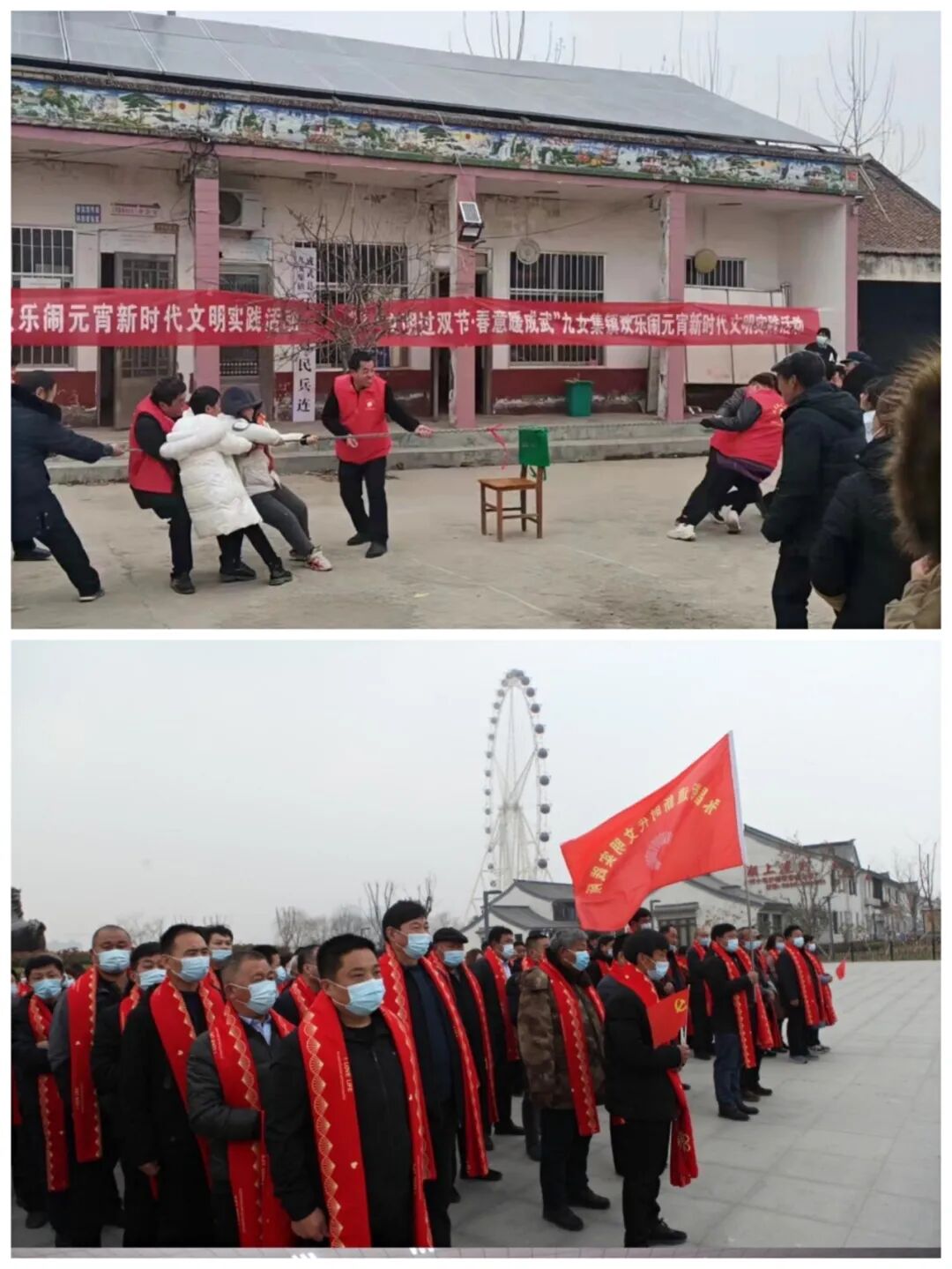 在白浮图镇新时代文明实践广场,志愿者们还专门设置了趣味游戏,拔河、跳大绳、扔沙包,群众积极参与,热情高涨,现场加油声、欢笑声、鼓掌声不绝于耳,处处洋溢着欢乐、祥和、喜庆的气氛。