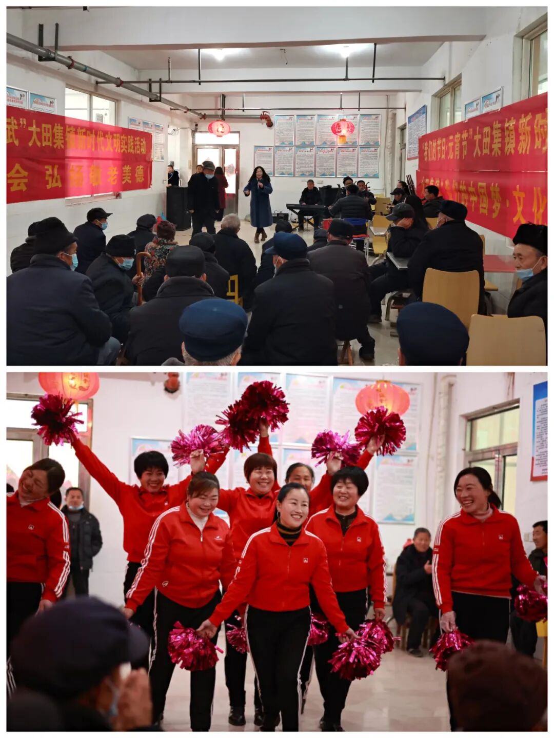 在汶上集镇新时代文明实践广场,新时代文明实践志愿服务队的志愿者与留守老人们欢聚一堂,共度元宵佳节。志愿者为老人表演了广场舞、秧歌、歌曲、戏曲等文艺节目,精彩的表演赢得了老人的阵阵掌声,个个笑得合不拢嘴。