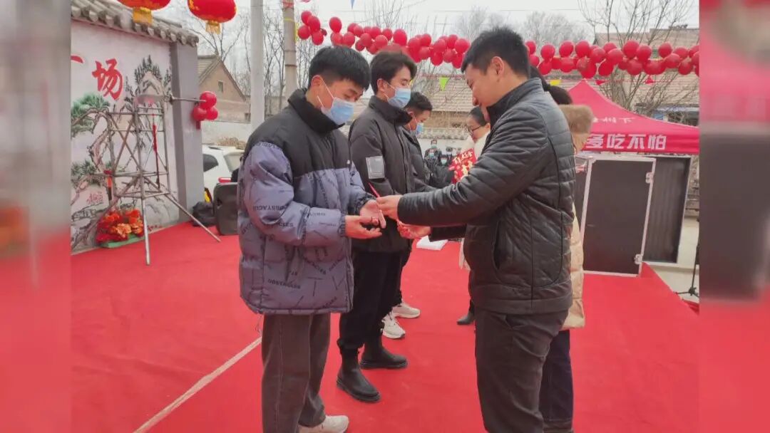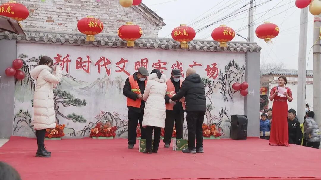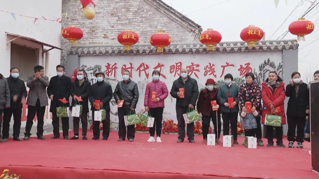 为了弘扬优秀家风村训,倡导健康文明新风,在节目演出间隙,党集镇和胡楼村党支部共同为村里大学生发放红包和学习用品,同时对评选出的“美丽庭院”标杆户、志愿者、环卫工人及新时代文明实践队伍进行了表彰颁奖,另外还为全村90岁以上老人发放过节红包及礼品,传递了党的深切关怀,也让孩子们感受了一次尊老、敬老、孝老的道德洗礼。