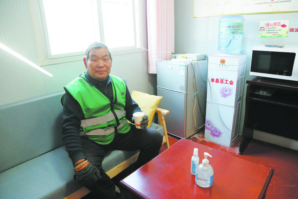 近日,在山东省菏泽市单县舜师路陨焦园户外劳动者驿站,牡丹晚报记者见到忙碌了一早上的环卫工人魏然全和他的同事们。一杯热水、一声问候、几句家常,缓解了户外工作者的疲惫,让他们感受到实实在在的温暖。