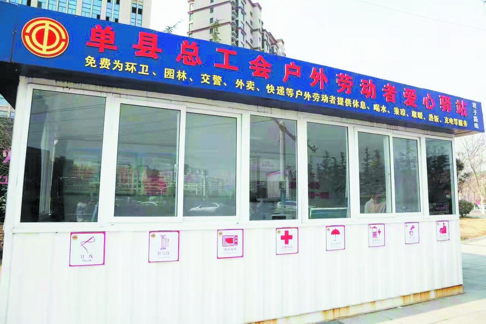 山东省菏泽市单县陨骄扒户外劳动者“爱心驿站”被全国总工会、山东省总工会授予“工会户外劳动者服务示范点”