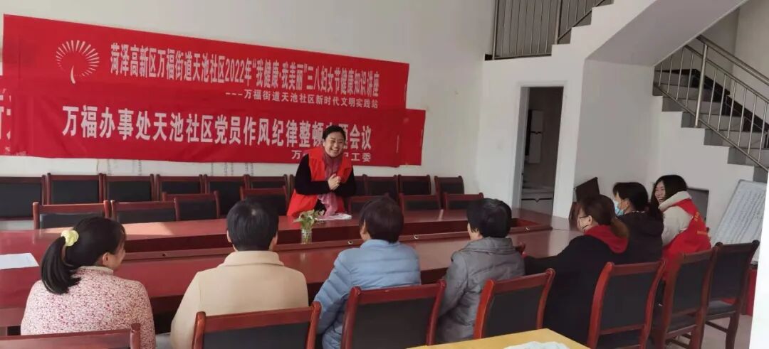 为进一步增强妇女群体健康意识,倡导全民健康的生活理念,3月8日,万福街道各村(社区)新时代文明实践站联合万福社区卫生服务中心,组织开展“我健康・我美丽”女性健康知识讲座活动。
