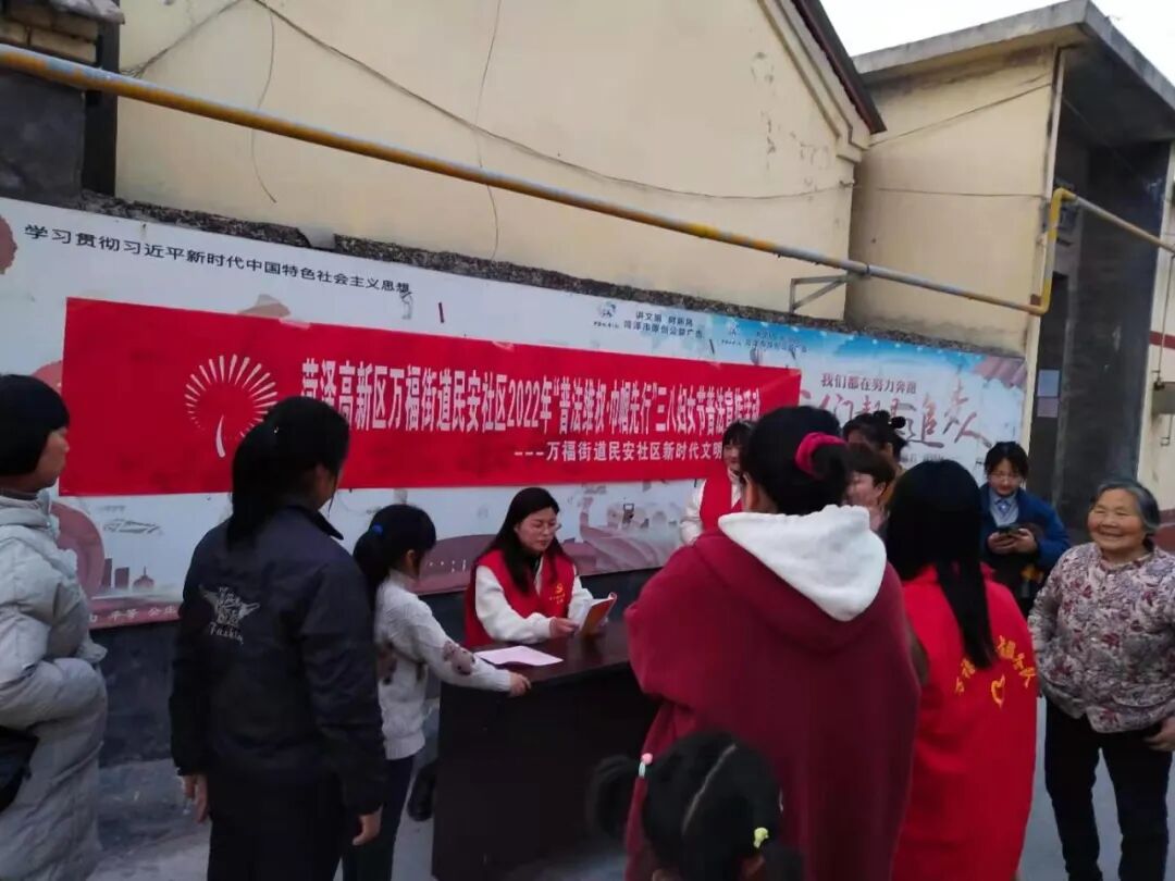 为深入广泛开展妇女普法维权宣传,全面提高妇女法治意识和依法维权能力,万福街道各村(社区)新时代文明实践站积极开展“普法维权・巾帼先行”普法宣传活动。