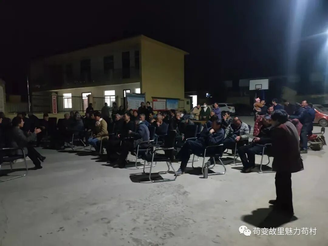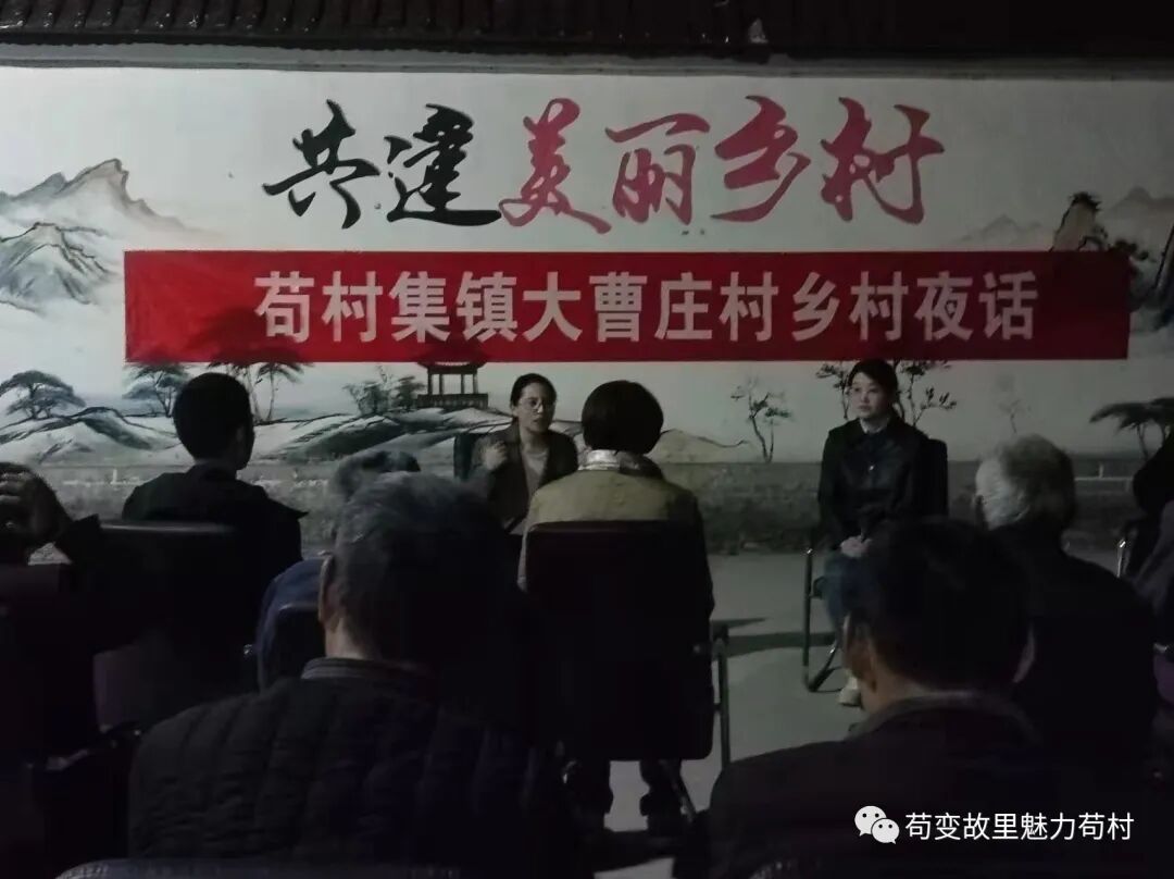 3月9日晚,成武苟村集镇大曹庄村的新时代文明实践广场上人头攒动,镇村干部、党员群众相聚在这里,开启了大曹庄村的第一次乡村夜话。镇党委副书记、镇长陈志平、常务副镇长董文静围坐在人群中,与乡亲们一起拉家常,讲政策,话发展。