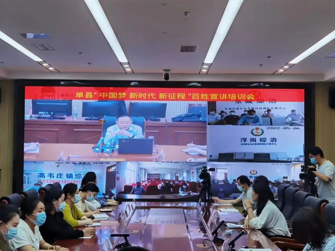 会议采取视频会议形式,单县鑫诚大厦矛调中心设主会场,各镇街设分会场,培训会通过县融媒体中心“魅力单州”APP进行同步网络直播,6935人收看。会议由单县县委宣传部常务副部长孟皓主持。县直各部门、单位宣讲骨干,各乡镇(街道)宣传委员、志愿宣讲骨干、村(社区)支部书记参加了培训。