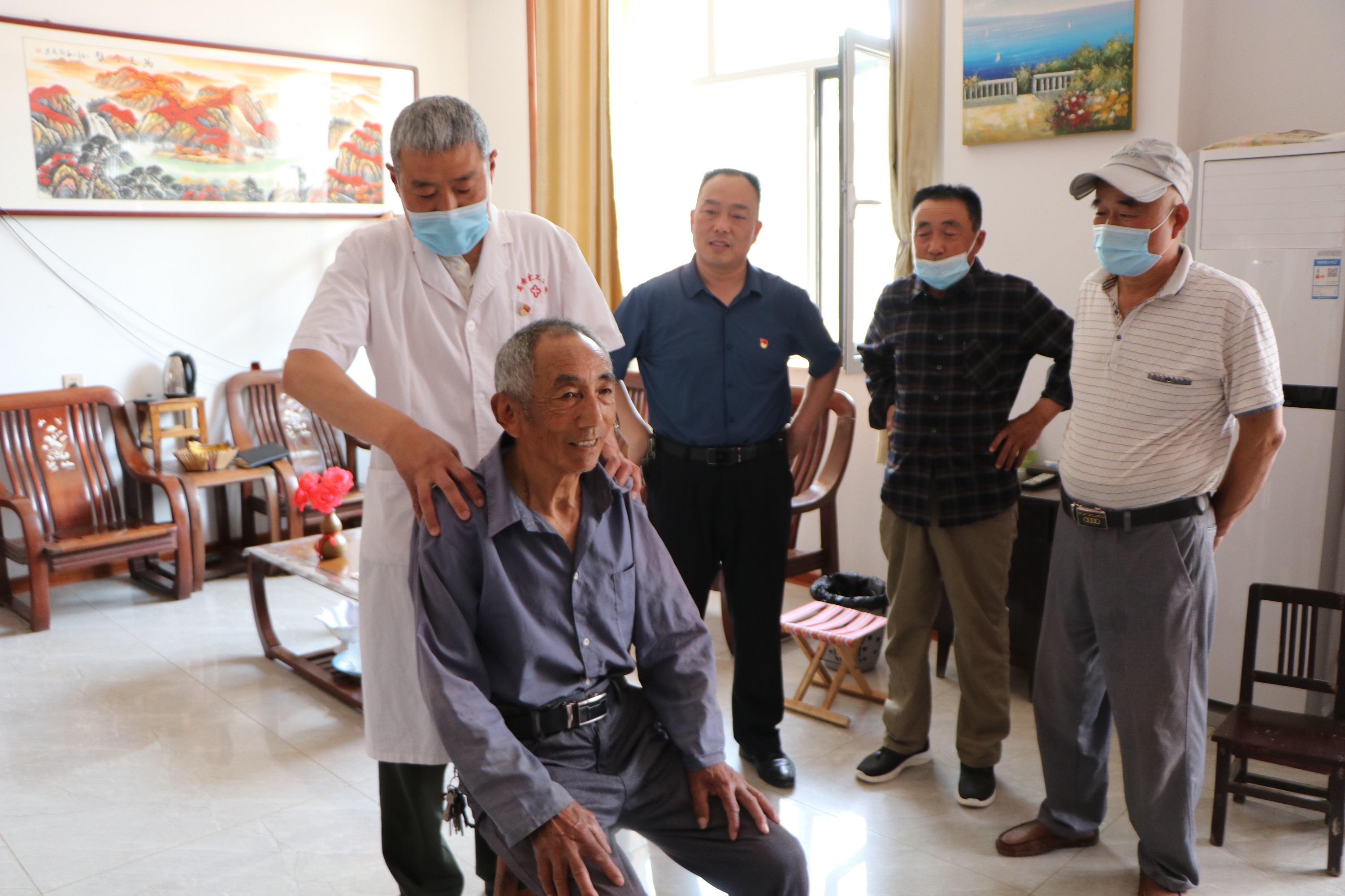 “是这里不舒服吗?”“平时一定要注意休息。”在高老家乡张武楼行政村金王楼村家庭站里,站长王建雷正帮着村民按摩颈椎。