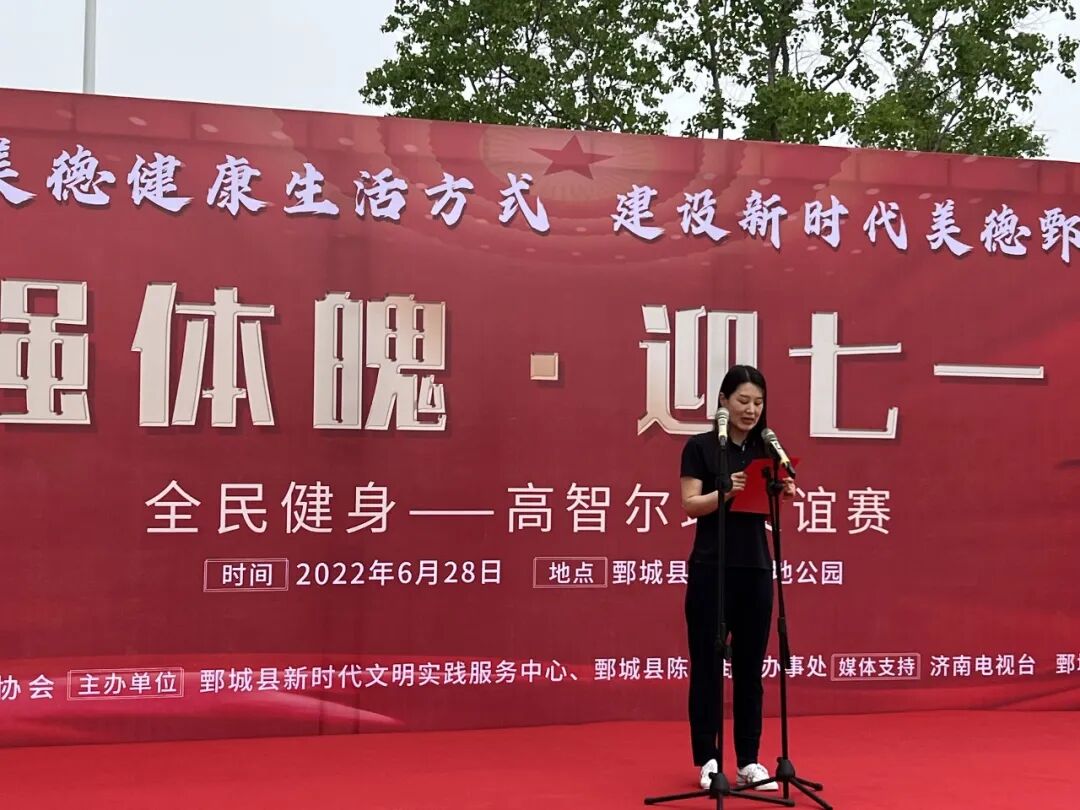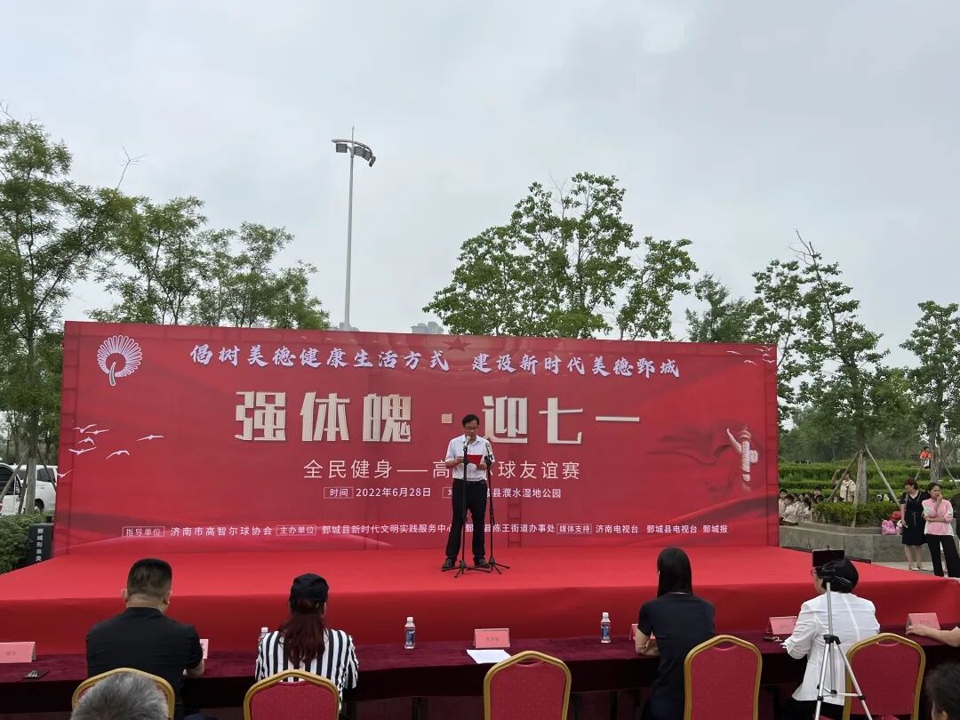 6月28日,由菏泽市鄄城县新时代文明实践服务中心、陈王街道办事处主办,济南市高智尔球协会友情指导的“强体魄・迎七一”全民健身高智尔球友谊赛在濮水公园举行。