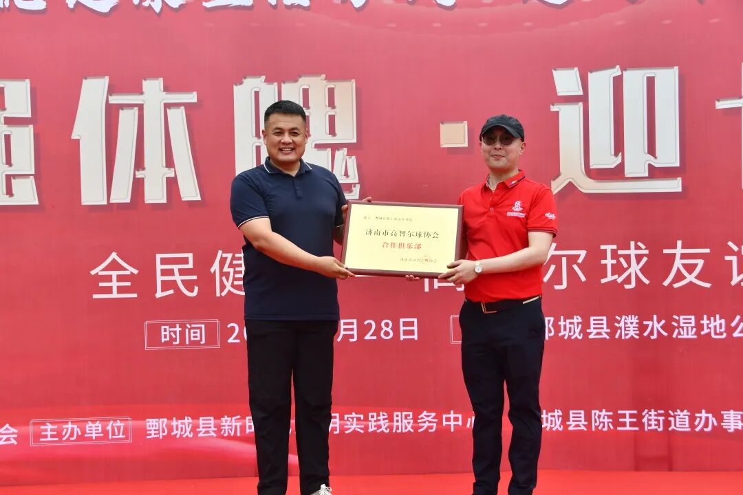 济南市高智尔球协会为陈王街道办事处授“合作俱乐部”牌匾