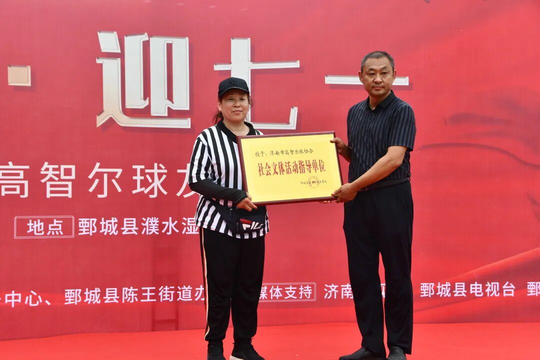 陈王街道办事处为济南市高智尔球协会授“社会文体活动指导单位”牌匾