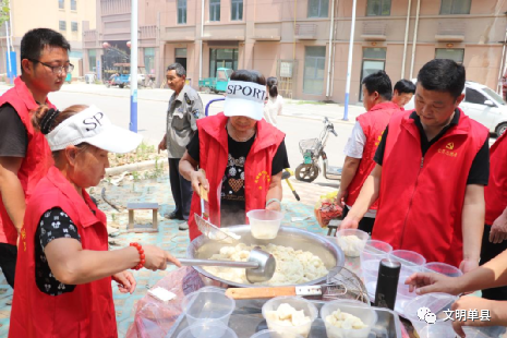 风雨兼程,砥砺前行。伟大的中国共产党走过了坎坷而辉煌的一百年,步入了2022年第二个百年新征程。值此中国共产党建党101周年之际,为进一步深化“双报到”工作成效,深入引导教育广大党员干部党性锻炼,坚定理想信念,弘扬中华民族尊老、敬老、孝老、爱老的传统美德,积极树立新时代道德风尚,深入推进农村精神文明建设。7月1日上午,县农业农村局党组成员主任科员张涛、巩富峰带领局机关党员志愿者到北城街道西关社区,携手北城街道西关社区志愿者组织开展了“喜迎二十大・庆七一”孝善敬老饺子宴活动。