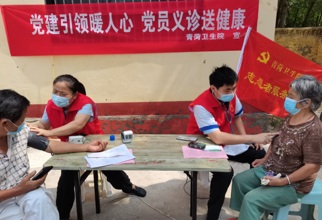 近年来,青菏卫生院党员志愿者走进社区、走进农户开展医疗志愿服务活动已经形成常态。由党员干部为主的医护人员组成医疗志愿者服务队,有计划的开展免费体检、健康知识普及,通过开展义诊活动,既拉近了党员与群众的距离,又进一步强化了党员身份的认知,自觉践行全心全意为人民服务的宗旨。