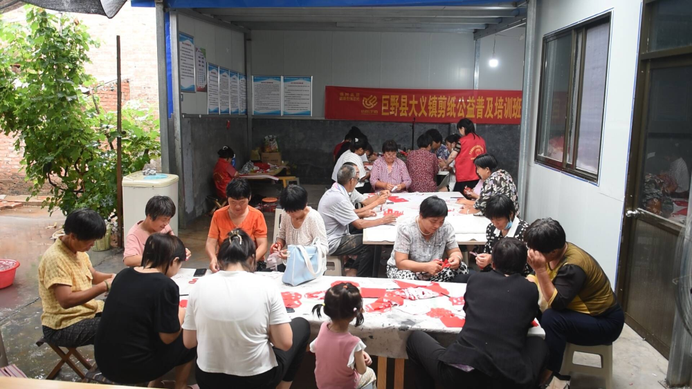 巨野县大义镇的村民在参加剪纸培训