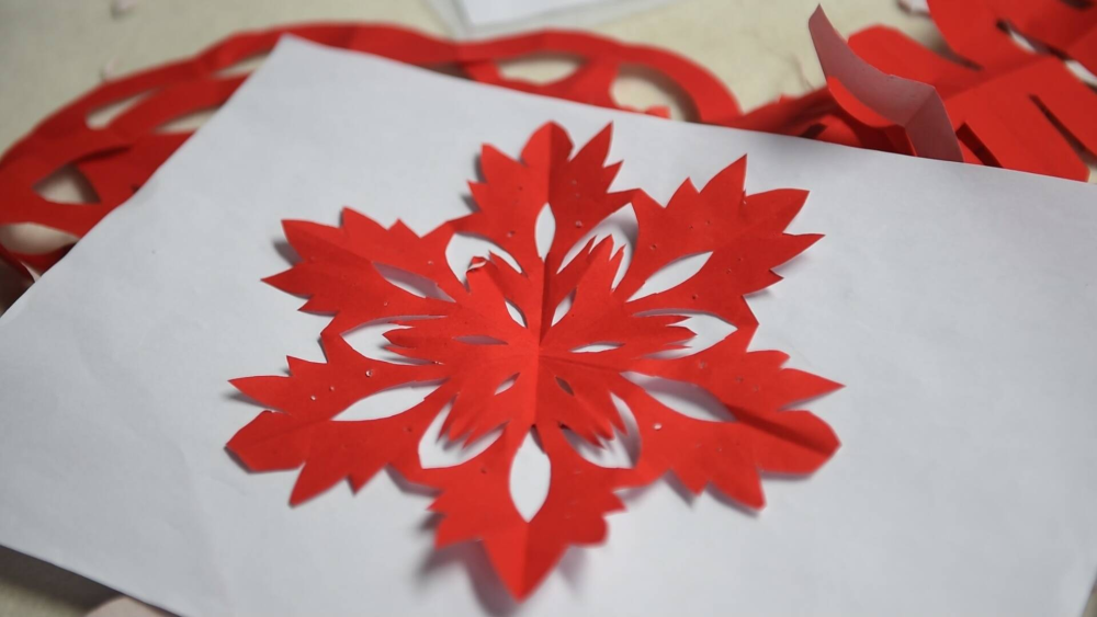 针对学员剪纸零基础的情况,常凤灵从剪纸的种类、基本刀法及图案、剪图构思等方面进行详细讲解,并亲自示范。“咱这一期培训,主要是给大家讲一下剪纸最基本的剪法,让她们先找到感觉,然后一点点加深难度。”常凤灵说,“今天大家进步很快,不少学员掌握了如团花、雪花、双喜等简单图案的剪纸技巧。”
