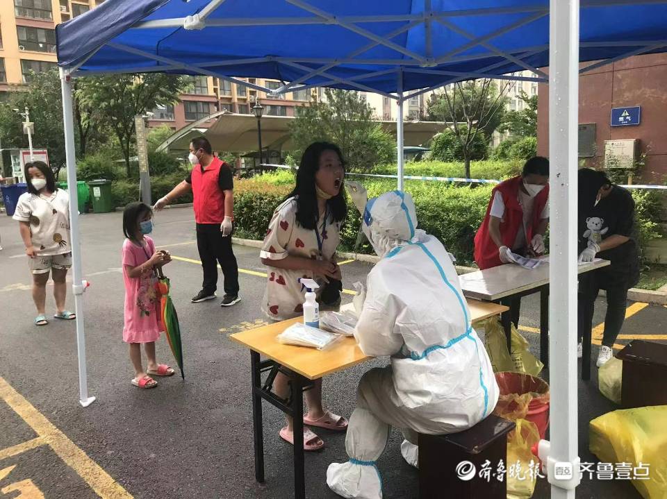 “请一号楼的居民赶快到楼下进行核酸检测,佩戴好口罩,保持一米安全距离……”早上六点的翰林豪庭小区,移动喇叭里就响起了志愿者们高亢洪亮的声音。每天早上,小区以家庭为单位进行核酸检测,实行一户一管。