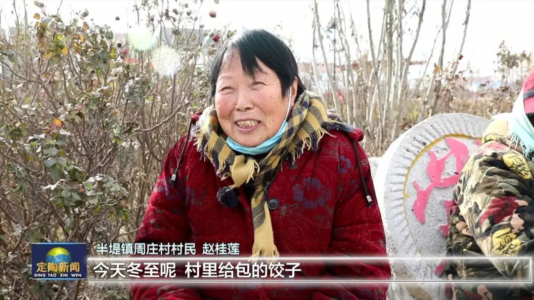半堤镇周庄村村民赵桂莲:今天冬至,村里给包的饺子喝了浑身上下热乎的,也不用自己包了,多好,啥馅的都有,啥面的都有,喝着不孬。
