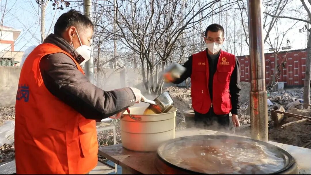 同时,在临近的西代庄村,村党支部书记郑汝奎也在村里熬了“大锅汤”,