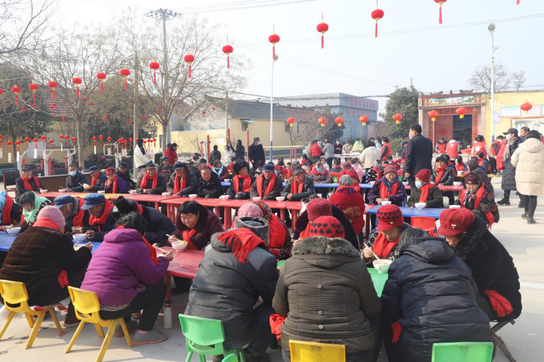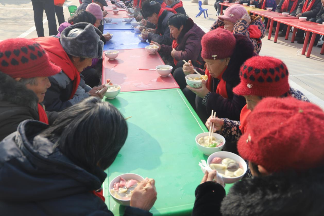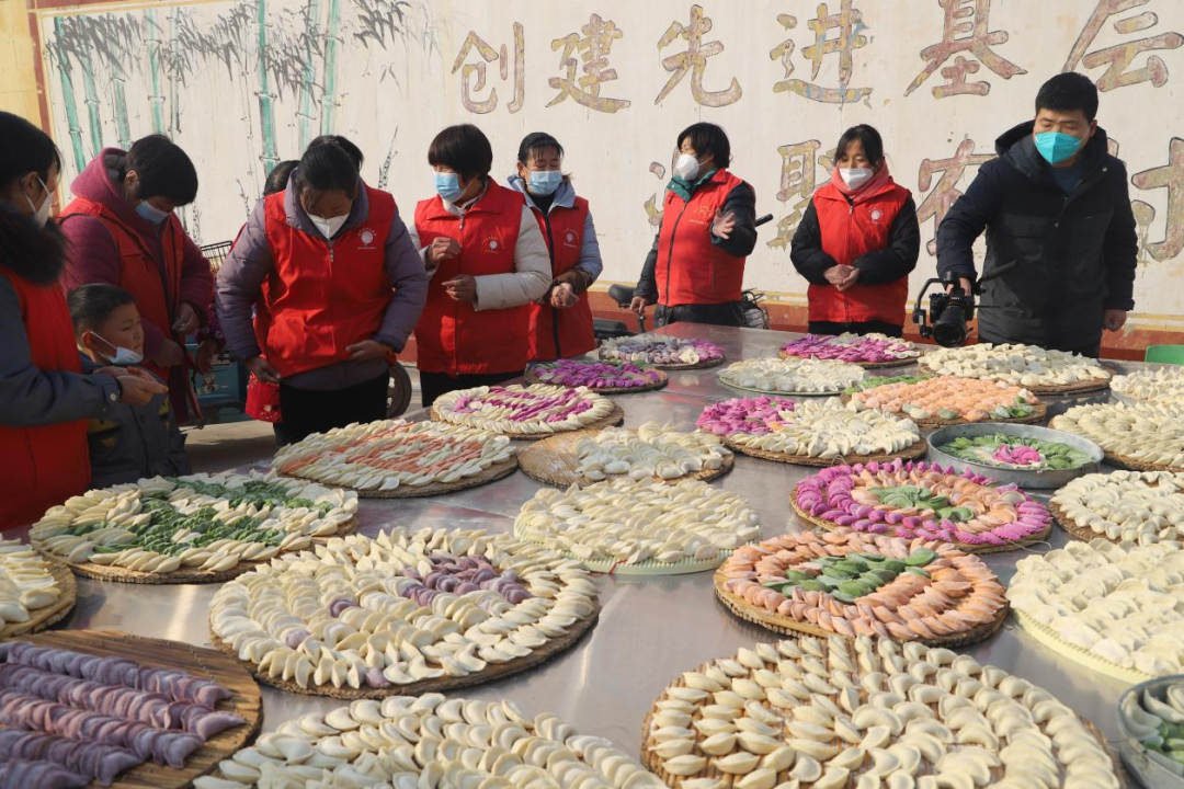 这边孩子们欢呼雀跃剪纸、猜灯谜,那边村里的志愿者们也没闲着,大家你擀皮儿我包馅儿,包出了几千个爱心饺子,还用七彩饺子摆出了“元旦快乐”的图案。村里的老人们戴上红围巾,一边吃着热腾腾的饺子,一边观看精彩的文艺节目,高高兴兴迎接新年的到来。“快过年了,我们今天参加这次活动,吃饺子,看节目,心里都很高兴,感受到党和国家的温暖,在新的一年,我们的生活更有奔头了。”汶上集镇洪楼村66岁的村民田道省说。