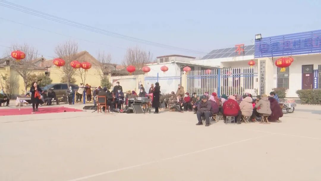 白浮图镇陈庄村的新时代文明实践广场上热闹非凡,大红灯笼布满了整个广场。听说村里搞活动,老人们早早地来到广场等候。为了活跃气氛,县百合剧团还为老人们准备了戏曲节目,现场一片热闹景象。