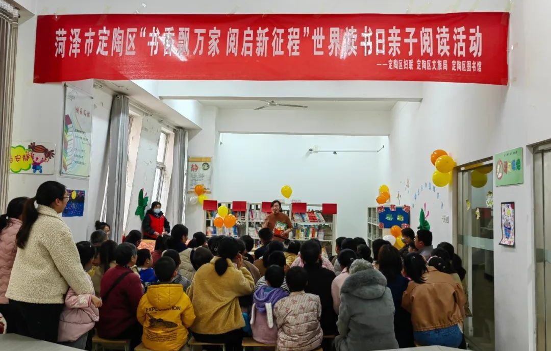 定陶区妇联联合区文旅局、区图书馆开展世界读书日亲子阅读活动,邀请定陶区“小红扣”家庭教育志愿者付东霞为孩子们讲述绘本故事《我喜欢书》,引领家长和孩子领略书香之美,“沉浸式”体验亲子阅读。