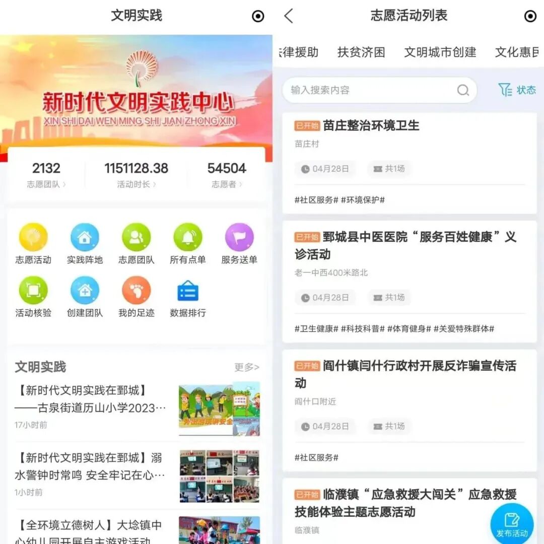 打造鄄城融媒APP“文明实践”云平台,通过“菜单化”服务,让幸福在家门口升级。截至目前,通过“志愿山东”云平台注册志愿服务团队2130余支、注册志愿者15.5万余名,总服务时长达509万余小时,将文明实践志愿服务精准送到群众身边。把志愿服务作为聚民心、暖人心、筑同心的重要举措,更是让新时代文明实践中心(所、站)成为人心人气聚集之地,文明实践氛围日益浓厚,让群众感知“文明温度”,参与“文明实践”,共享“文明成果”。