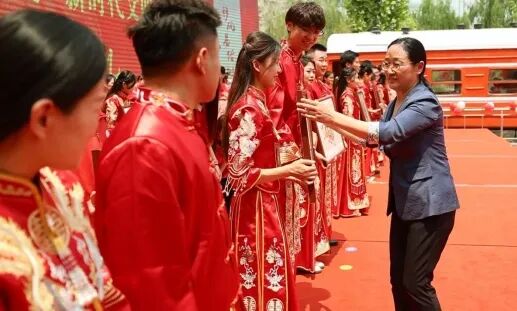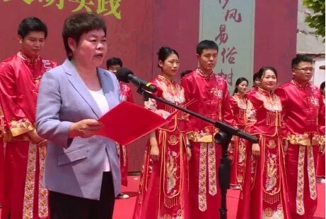 巨野县委书记冯艳丽为新人颁发结婚证并证婚,希望他们不负韶华,勤奋工作,孝敬父母,奉献社会,不断实现人生理想和社会价值,把个人梦想融入家乡梦、民族梦,汇聚起建设幸福美好新巨野和实现伟大中国梦的磅礴力量。