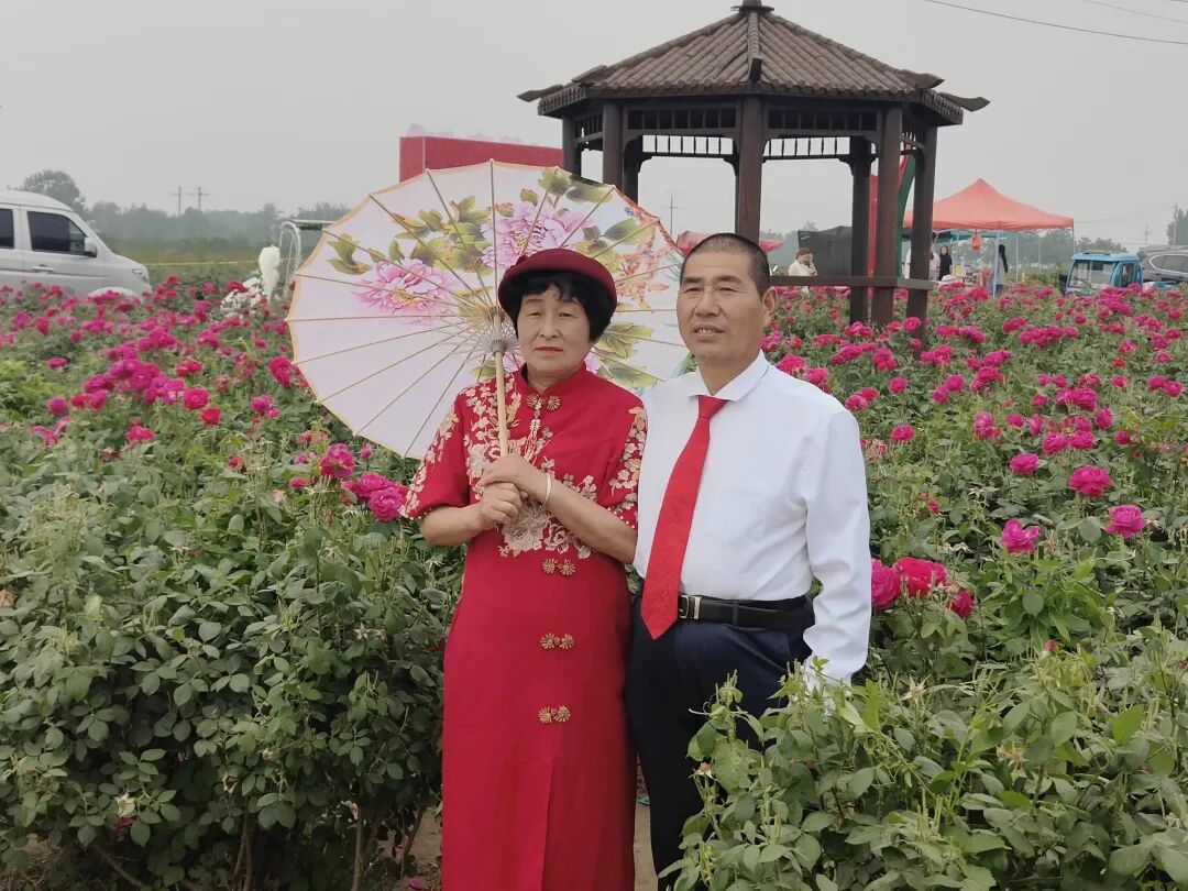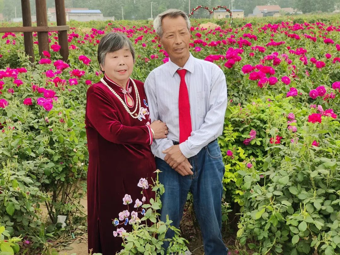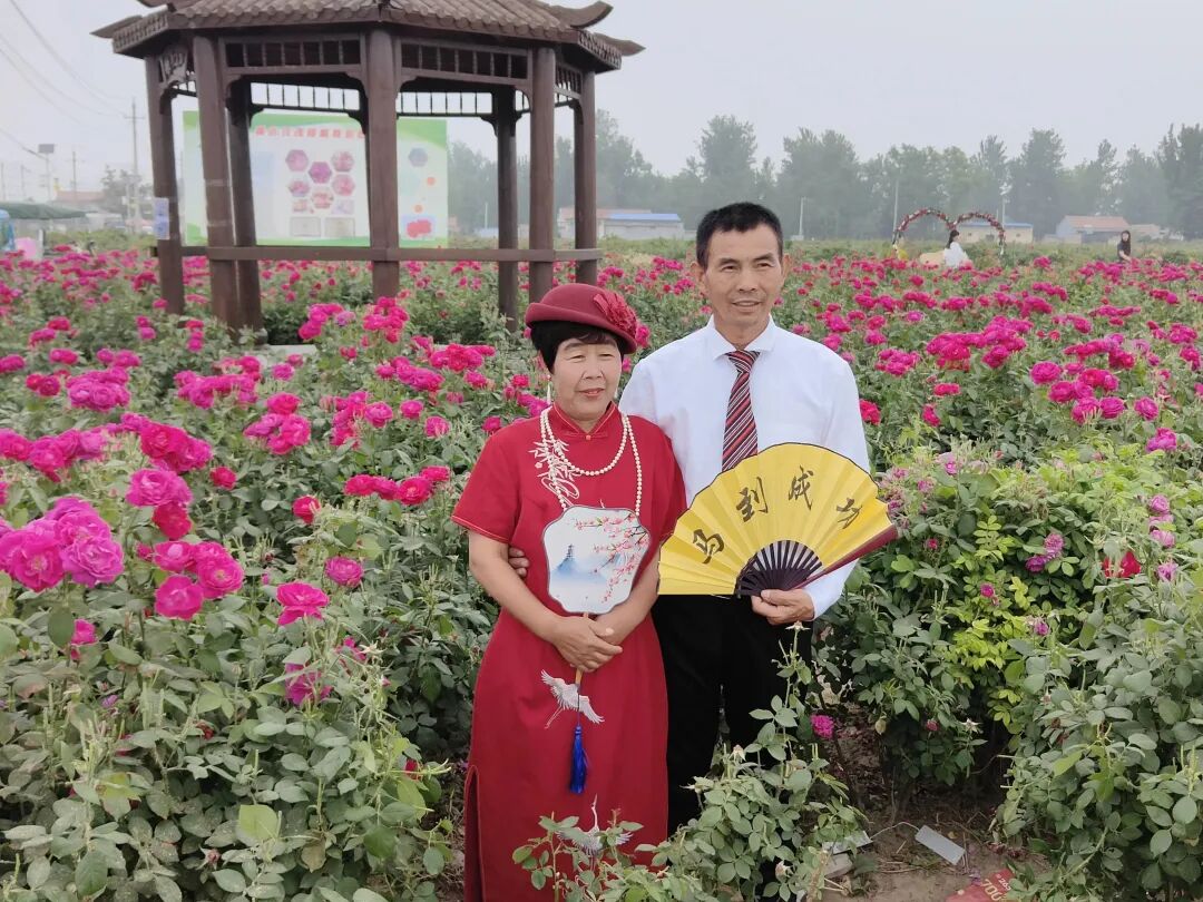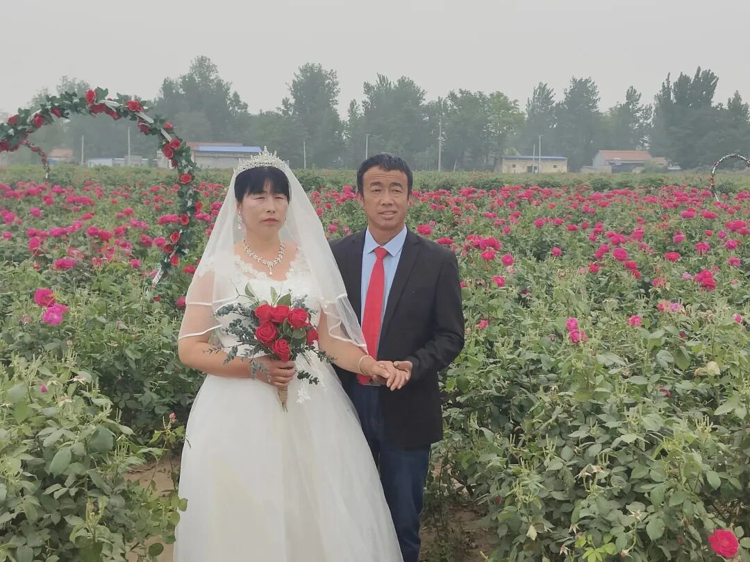 5月18日,定陶区黄店镇在万亩玫瑰园开展“时光记忆 幸福留影”新时代文明实践活动,免费为老年夫妻拍摄婚纱照,为他们送上珍贵的礼物。
