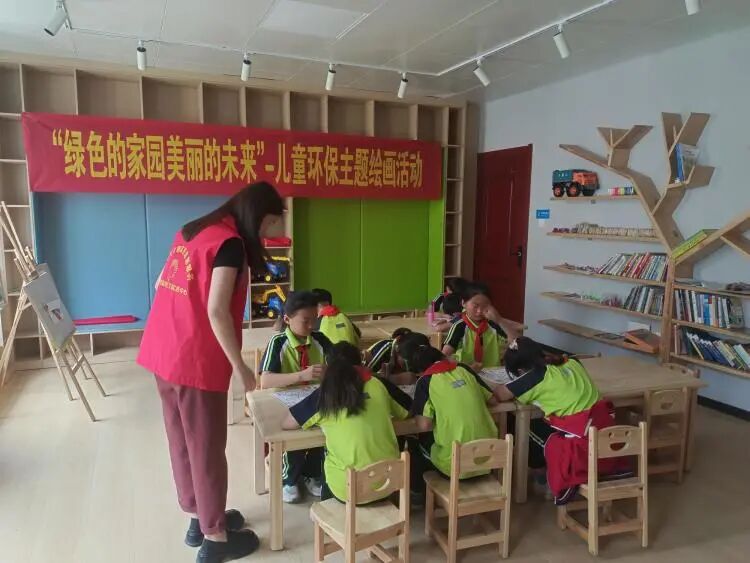 志愿者组织好活动后,将画笔和纸分发给孩子,孩子们开始了自己的绘画,本次活动以节能环保,低碳生活为主题,呼吁号召广大群众参与到我们的环保工作当中去,并且知道环境需要大家共同维护。