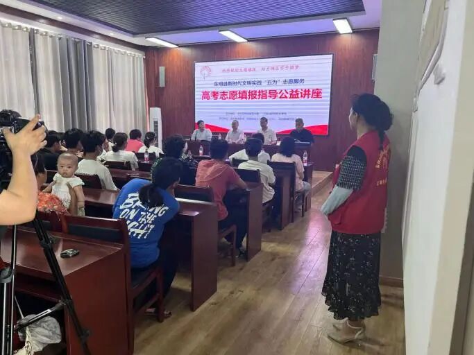 探索创新、扎实推进,志愿服务队以群众需求为重点,围绕“讲、评、帮、乐、庆”作为主要的活动形式,以“六有”“五为”“五聚”为主要内容,为群众提供“量身裁体”式服务,组织开展“高考志愿填报指导公益讲座”志愿服务,邀请有丰富教学和志愿填报经验的老师针对性地为学生指导填报志愿,并就如何选择专业等方面进行了答疑解惑,切实解决群众问题。