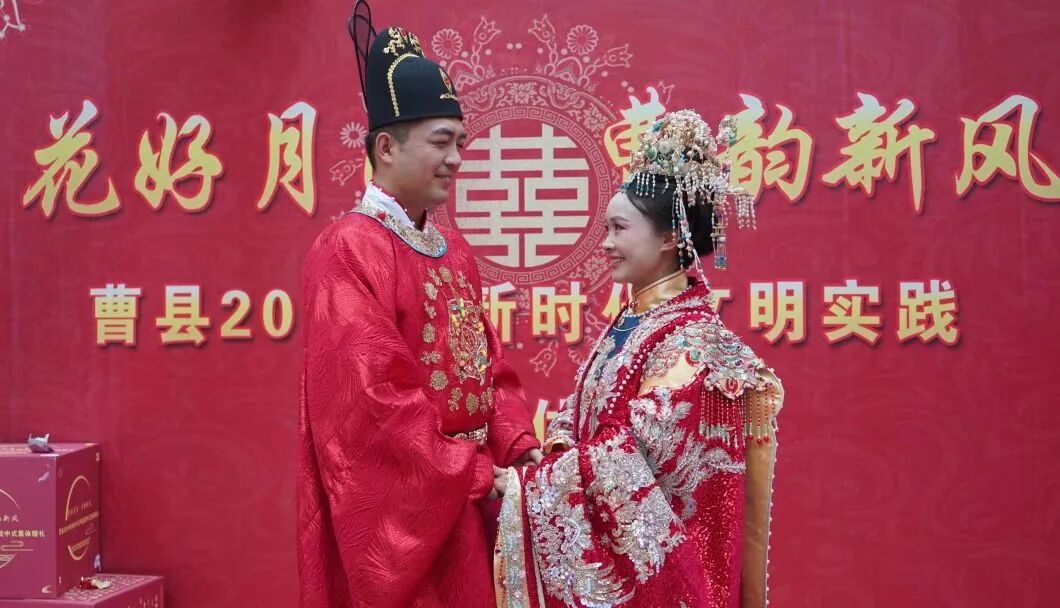 传统与现代相互融合,中式集体婚礼引领曹韵新风。近年来,曹县不断深化移风易俗工作,深入挖掘民风民俗资源,广泛开展各项文明实践活动,引导全县广大青年以新的气象、新的追求、新的担当,主动践行新时代婚恋新风,争做文明风尚的倡导者、社会进步的推动者、新风正气的传播者。