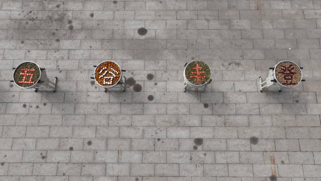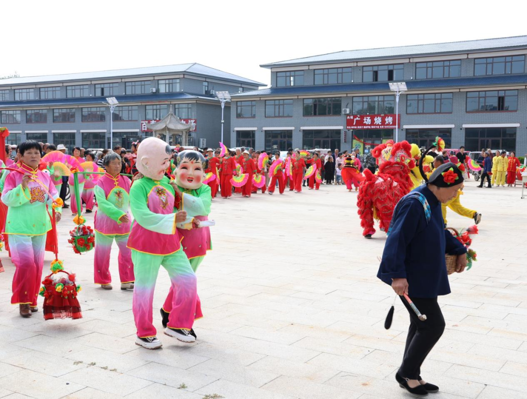 广场一角,几位心灵手巧的“巧媳妇”用新收获的玉米、花生、毛豆、红枣、地瓜等农作物,在蒸笼中精心拼出“五谷丰登”四个大字,引得不少群众驻足拍照,夸赞着这份独属于丰收的创意。就在这充满喜悦的氛围中,冉堌镇100余名文艺队员缓缓入场,围绕着“五谷丰登”跳起了欢快的舞蹈。打扮得活灵活现的“蹬蹄子小马驹”蹦蹦跳跳,欢快地“奔腾”着,仿佛在田间撒欢;“醉酒济公”摇着破蒲扇,脚步踉跄却透着诙谐,逗得大家哈哈大笑;“拉花船车夫”则弓着腰,配合着花船里演员的动作,一招一式都充满了生活气息。精彩的表演让现场喝彩声接连不断,汇成了一片洋溢着丰收喜悦的欢乐海洋。