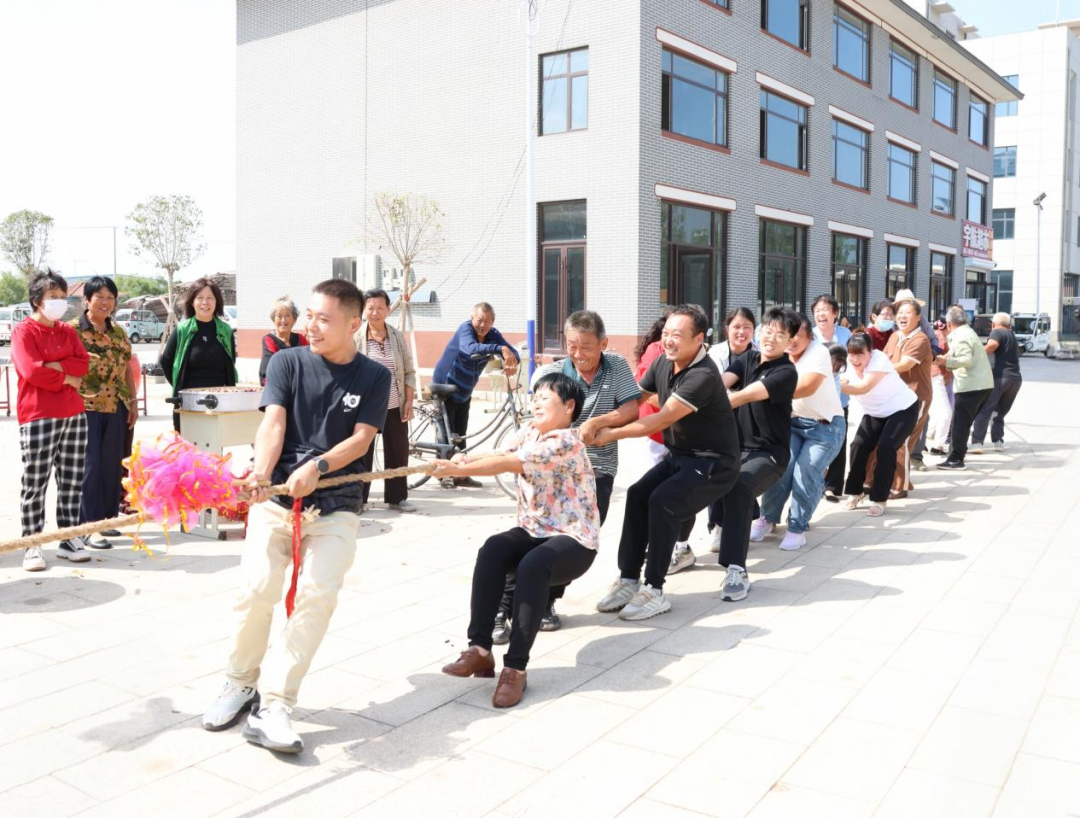 随后举行的“农民运动会”更是将活动推向了高潮。长长的绳子中间系着一条红绸带,双方队员各占一边,紧紧握住绳子。“开始!”裁判的口令刚落,队员们便使出浑身力气,嘴里还喊着整齐的号子:“一二!加油!一二!加油!”绳子中间的红绸带在两队之间来回移动,大家纷纷跟着喊起“加油”。这场充满“较劲”的比赛,比出了农民的精气神,也赛出了邻里间的默契与欢乐。