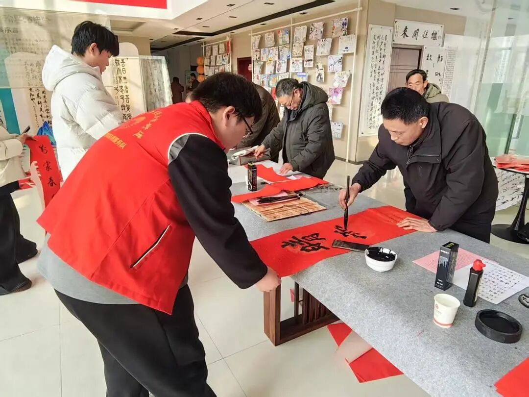 活动现场,书法爱好者挥毫泼墨,一幅幅寓意吉祥、笔力遒劲的春联跃然纸上。志愿者们默契配合铺纸、研墨、晾置,细致整理叠放后,与工作人员一同为过往群众免费赠送,递上喜庆年味的同时,送上真诚新春祝福,讲解春联寓意,传承中华优秀传统文化。