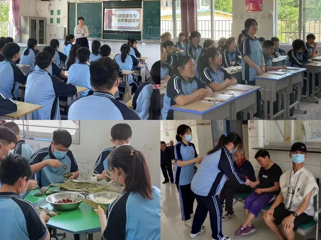 在汶上集镇初级中学,开展“粽叶飘香迎端午 传统文化进校园”实践活动,通过品读屈原诗词、学习屈原精神,培养孩子无私奉献的气节品格。同时通过乡村“复兴少年宫”平台,自己动手包粽子,并送给抗战老兵和老党员们,传承屈原精神,提升精气神。