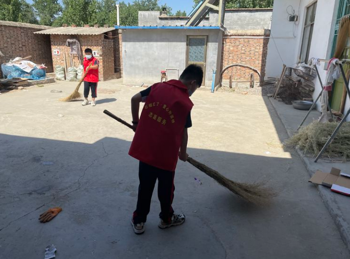 活动中,同学们充分发扬不怕苦、不怕脏、不怕累,发挥“小手拉大手”的积极作用,对主要道路上的堆积物、杂草、以及孤寡老人家庭院落卫生等重点区域进行清扫,绝不放过每个“死角”。