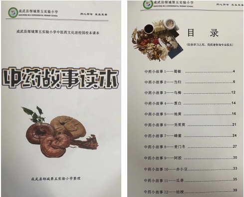 编写中药校本教材。学校编制了《身边的中草药上下册》《24节气养生食谱》《中药小故事校内读本》《中华十大神医故事》《部分常用中草药炮制方法》等校本课程;收集整理中医小视频30多个,并创作了《中草药之歌》。学校把课程做成了立德树人的思政课和实践课,用名医的品质、事迹教育孩子;通过中草药的种植、管理、炮制、制作药膳药茶等活动锻炼孩子的动手能力;用中草药的神奇故事增强学生对中华传统文化的自信,进一步传承中医药文化。