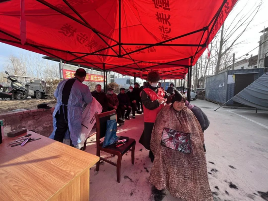 “二月二,龙抬头,剪掉忧愁,一年好兆头。”爱心义剪活动现场,等待理发的人员排起了长队,大家都希望能在二月二这天理发得个好彩头,义剪志愿者们运用娴熟的理发技术,细心地为每一位村民修剪头发,看着理出的清爽利落的发型,老人们一个个脸上都露出了满意的笑容。
