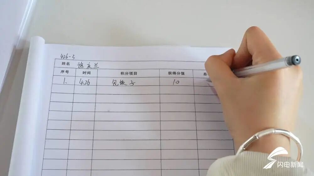 “今天参加饺子宴给大家计算为10分,参加集体生日,给老人唱生日歌,积分积5分。”