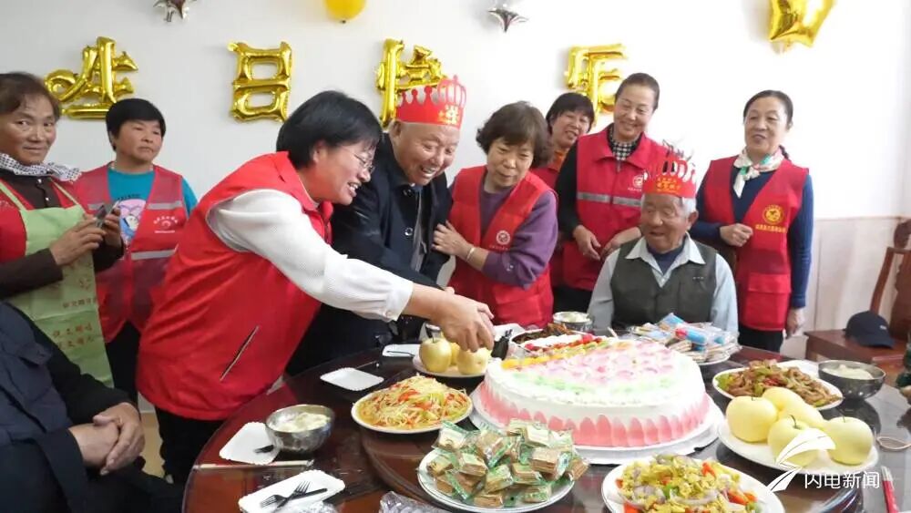 这是由张楼镇新时代文明实践所和敬老院联合开设,陪伴老人过集体生日的志愿项目。志愿者自愿报名,陪伴敬老院本月份生日的老人一起集中过生日。