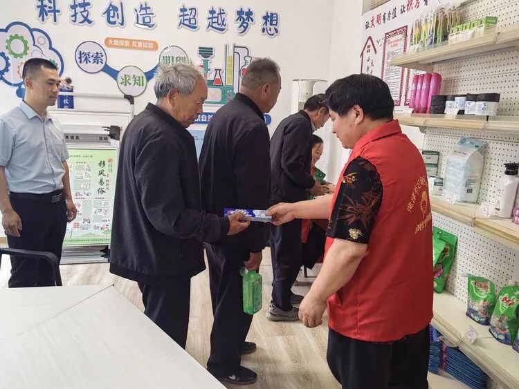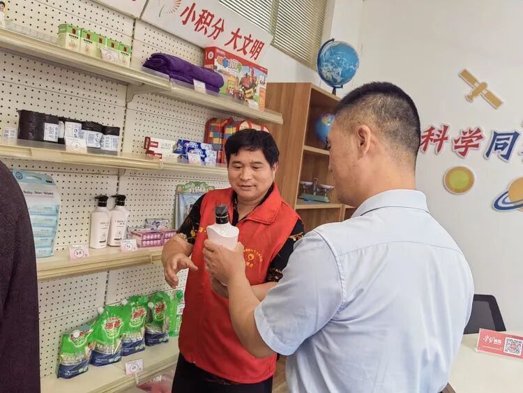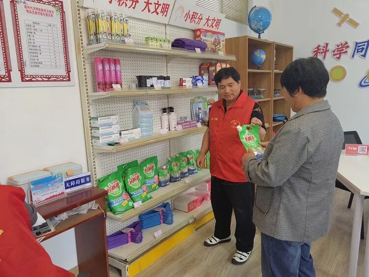 走进袁堂村新时代文明实践站“美德信用”积分超市,货架上整整齐齐的摆放着牙刷、牙膏、洗衣液、卫生纸等生活用品,每类物品都对应着一定的积分,群众可以根据累计信用积分兑换生活所需物品。5月26日上午,10多名袁堂村群众相约到美德信用超市兑换积分,有的兑换洗衣液,有的兑换洗洁精,据他们介绍在生活中多参与实践站组织的志愿服务活动就可以找专管员领取积分卡,不用花一分钱就可以兑换到生活用品。