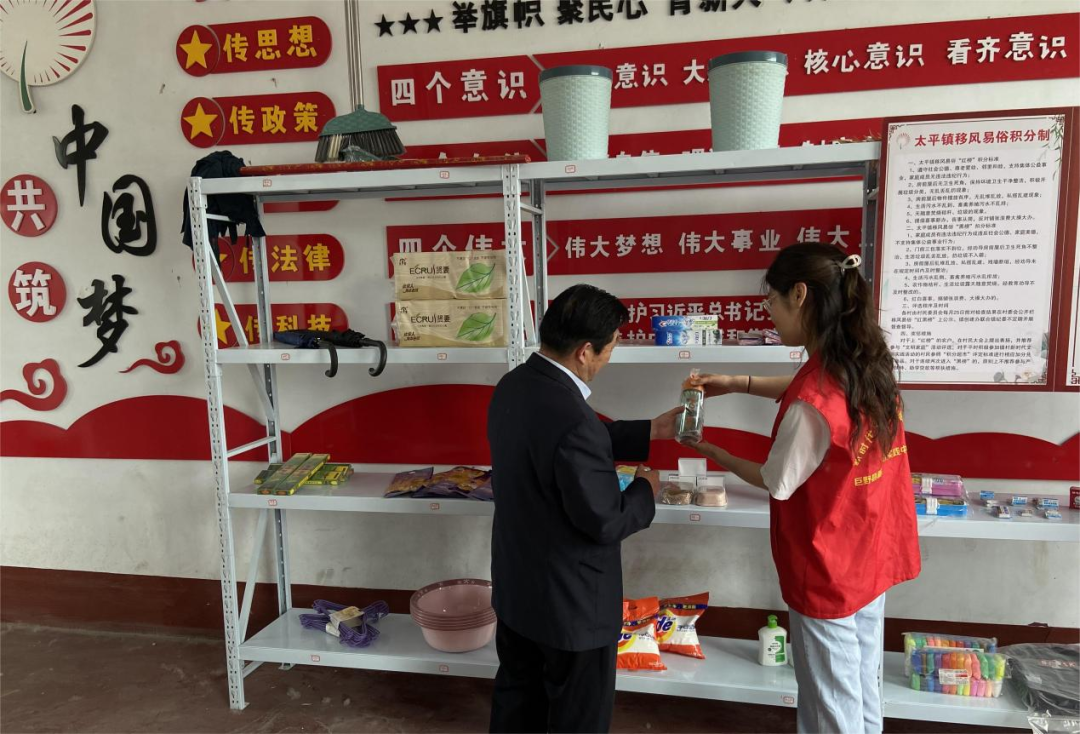 “美德信用积分制”以五进工程为抓手,围绕“进机关单位、村庄社区、学校家庭、企业行业、网络空间”等五个层面,全力推动“美德太平”和“信用太平”相互赋能、同频共振,多层面推动美德信用在太平镇落地生根、开枝散叶。在积分制细则中,专门列出了各类有关美德信用事项的加减分项目,村民获得积分后,可以到太平镇积分超市内兑换各类生活物品。此外,根据累计分数的高低村民将有机会获得“四德人物”或“文明家庭”等荣誉,实现“德者有得,名利双收”的良性循环,在潜移默化中加强群众自我激励和自我约束意识,最大程度调动广大村民参与社会治理的积极性和主动性,提高社会治理效能。