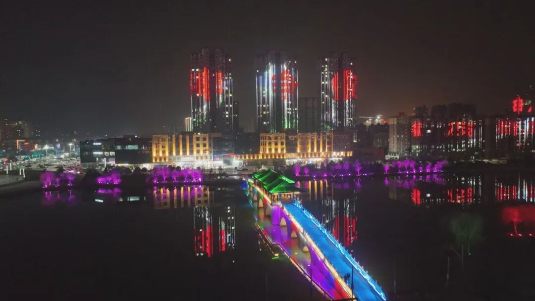 暮色降临,华灯初上,依傍文亭湖的楼宇接连成片,生态鸟岛、郁文阁、廊桥一步一景,电视观光塔、摩天轮两个地标并肩而立,红、橙、黄、绿、青、蓝、紫,七彩灯光交织萦绕、流光溢彩,令人流连忘返。城市、街道、楼房、桥梁、地标等景观元素高度融合,在城市面貌中悄然添加的灯光亮化,让城市“颜值”持续提升。依托城市亮化工程,加入文明、美德、诚信、健康等内容,于风景旖旎中将文明浸润人们心田,扮靓了城市夜景,“点亮”了美德文明……