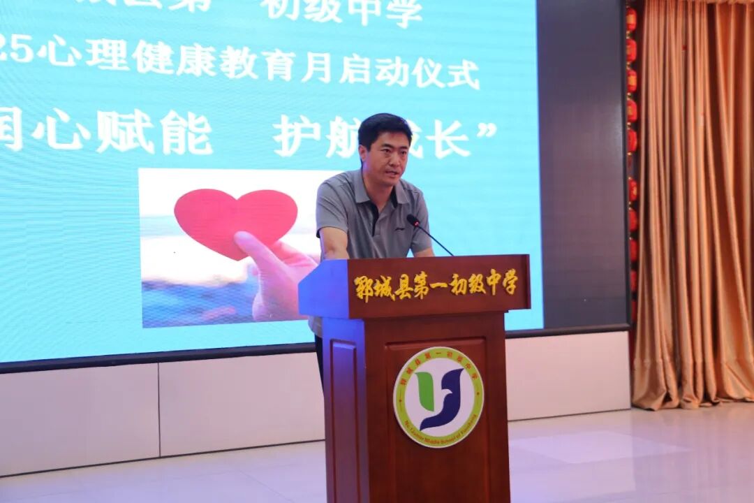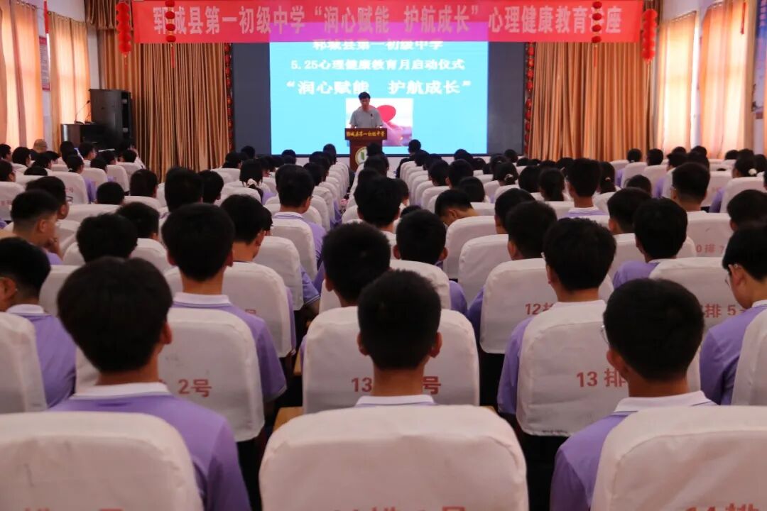 5月20日,在“5·25心理健康教育日”来临之际,郓城县第一初级中学紧扣“润心赋能护航成长”主题,举办了心理健康教育月启动仪式。郓城县教研中心心理健康教研员曲洪建老师,校领导,学校心理咨询师共同出席本次活动。