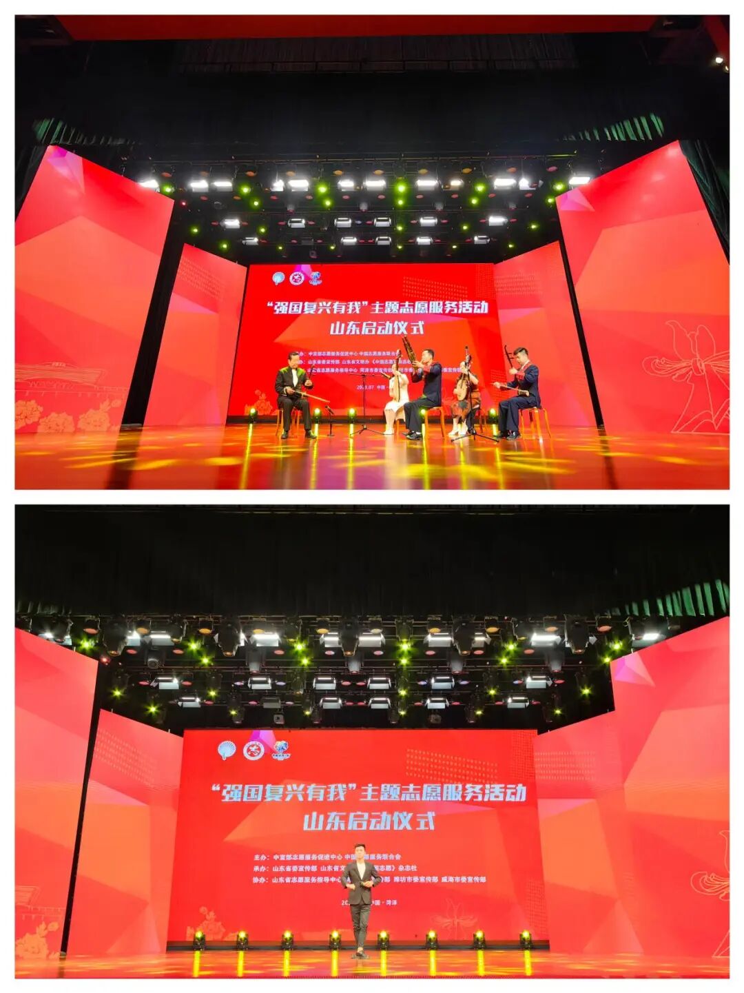 启动仪式上,与会人员为志愿服务项目孵化基地(山东)揭牌,并为首批入驻项目颁发证书,中央音乐学院文艺宣讲志愿者进行现场展示交流,中医药志愿服务队、“医路有我”急诊急救志愿服务队、体育志愿服务队、农民书画志愿服务队介绍了项目情况,安踏集团、东阿阿胶、鲁南制药等企业捐赠体育用品、常用药品等物资,支持志愿服务活动开展。