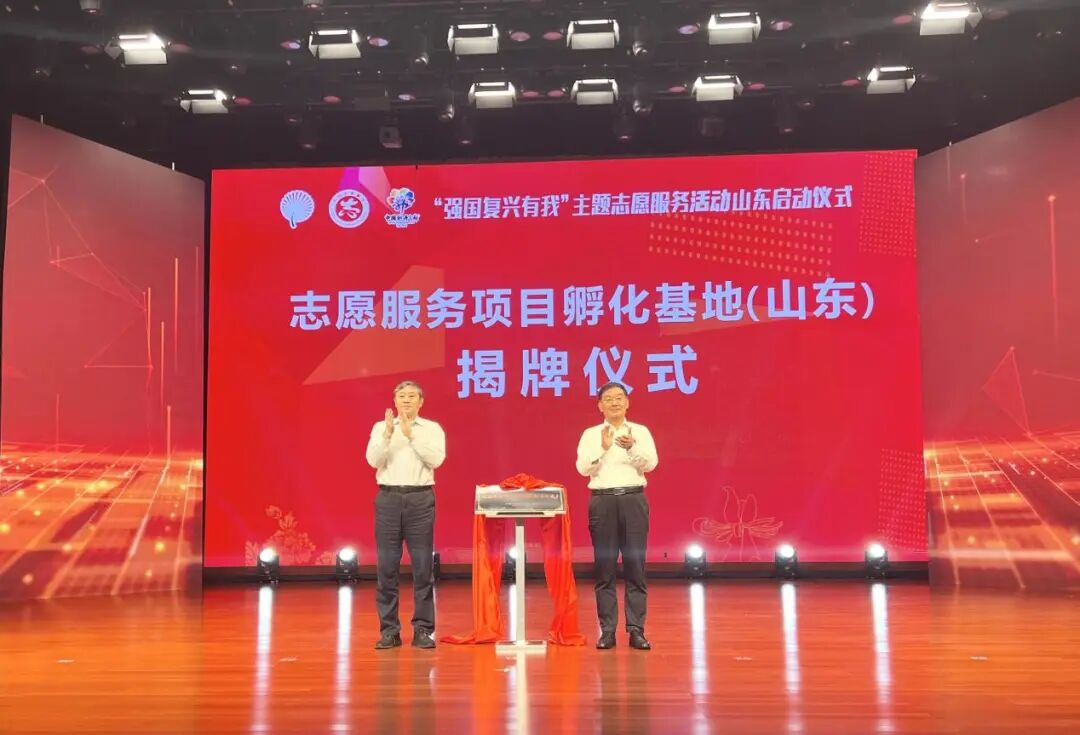 中国志愿服务联合会常务副会长孙志军、山东省委宣传部副部长孙文利共同为志愿服务项目孵化基地(山东)揭牌