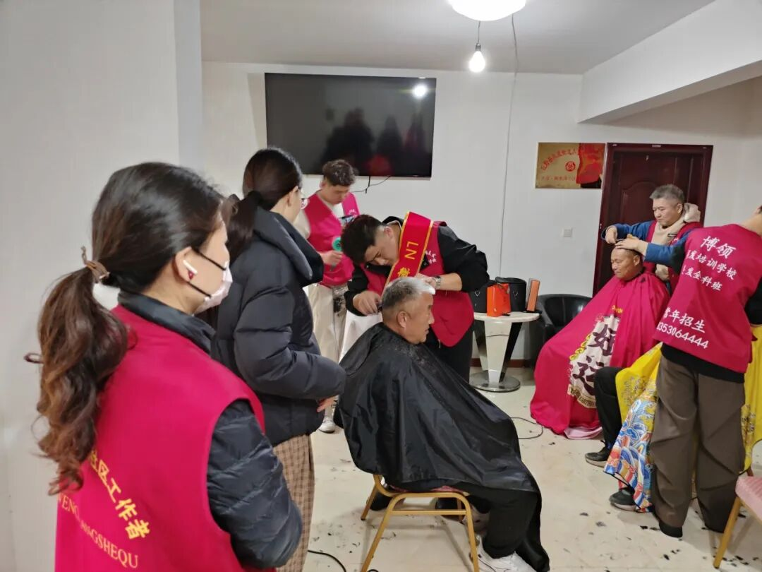 巨野县凤凰街道文昌社区开展剪发服务与上门慰问活动,旨在为小区老年居民送去节日关怀,提升他们的幸福感与归属感,营造邻里互助、敬老爱老的和谐社区氛围。活动当天,社区特别邀请专业美发志愿者团队来到响水湾小区,耐心地为每一位前来的老人修剪头发。老人们围坐在一起,一边聊着家常,一边享受着免费的理发服务。