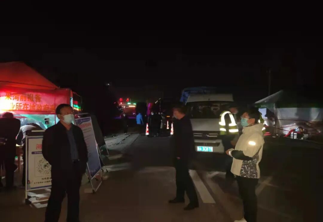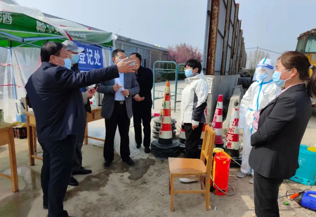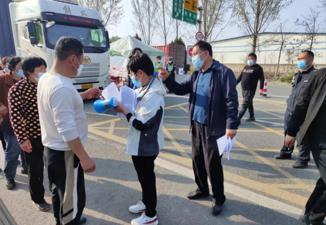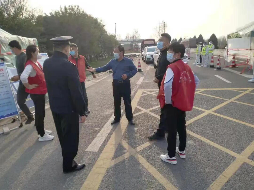 何楼街道党工委书记李鹏程在高速路口、货物堆放场调度疫情防控工作