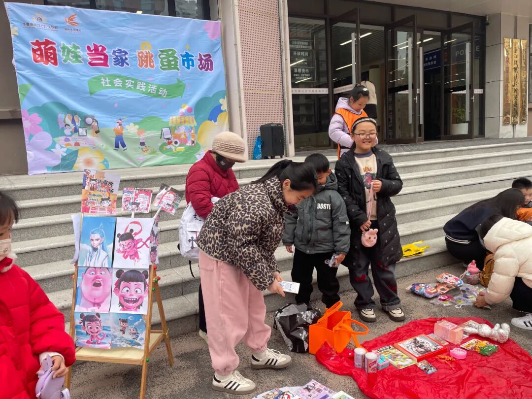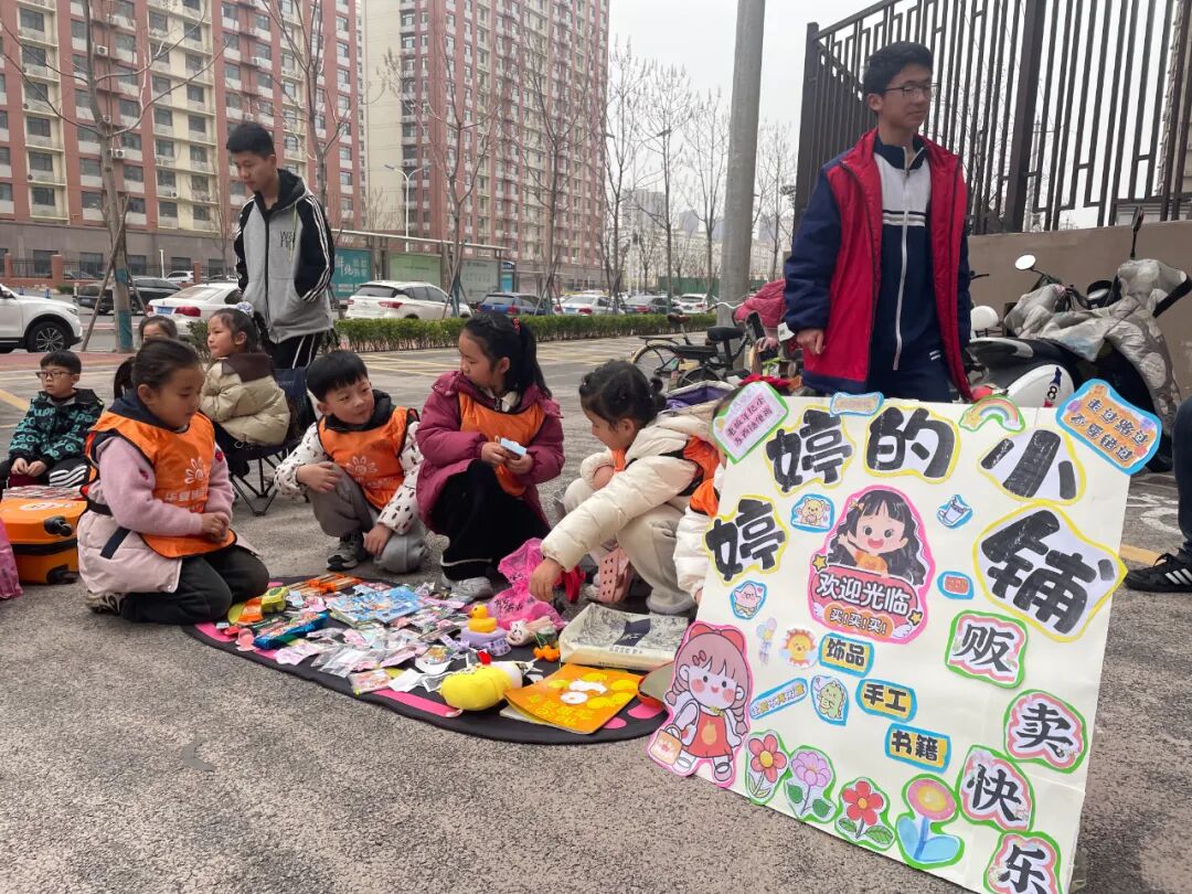 活动开始前,孩子们早早来到各自的摊位,把自己闲置的玩具、书籍、手工制作等物品一一摆放在摊位上。他们还精心制作了摊铺的海报、价格标签,创意十足。